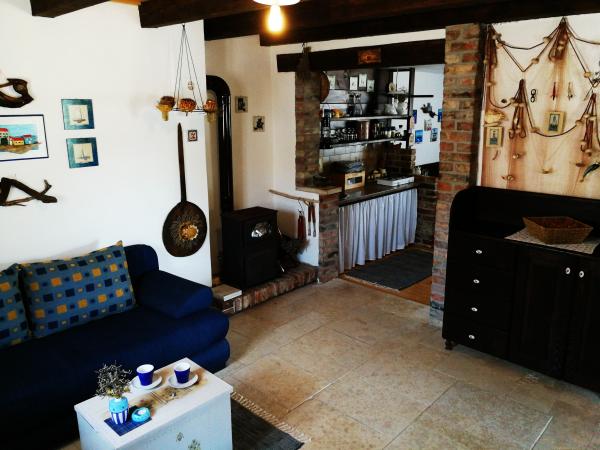 La casa está situada en una tranquila y resguardada bahía bahía en el lado oeste de la isla de Iz. Está situado cerca del mar. El centro de Veli Iz, se puede llegar en coche para conseguir alimentos y otros suministros. La isla de Iz, todos los días hay un ferry. La casa está equipada con paneles solares, gas de cocina, y el uso del agua del agua de lluvia. Hay dos habitaciones, el dormitorio tiene una cama doble y un sofá cama para dos personas y una cama para una persona y cocina. La terraza es amplia con hermosas vistas del mar, y también tiene una parrilla. Manténgase seguramente permitirá a la paz, lejos del ruido de la ciudad, en el silencio y la sombra de los olivos que rodean la casa.