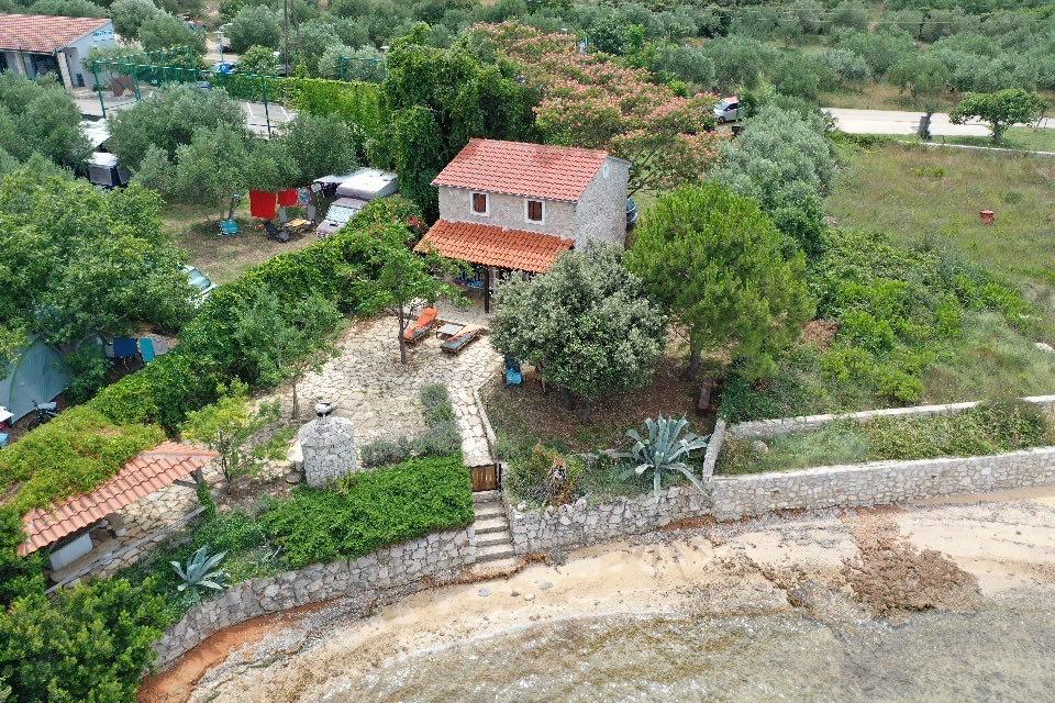 La casa se encuentra al sur del centro de Tkon, en la isla de Pašman, junto a la carretera. Puede cruzar la puerta y aparcar el coche justo al lado. Junto a la casa hay un campamento nudista oculto por plantas trepadoras. El primer edificio, al otro lado, está a 50 m. La casa se encuentra a 10 m del mar y de la playa de arena. El mar tiene aproximadamente medio metro de profundidad y fondo arenoso, ideal para niños. Delante de la casa hay una terraza cubierta de madera con mesa y bancos donde podrá disfrutar de la sombra y comer, y justo al lado hay una barbacoa de piedra. También hay un toldo justo delante de la casa que proporciona sombra. Hay una ducha exterior en la terraza.