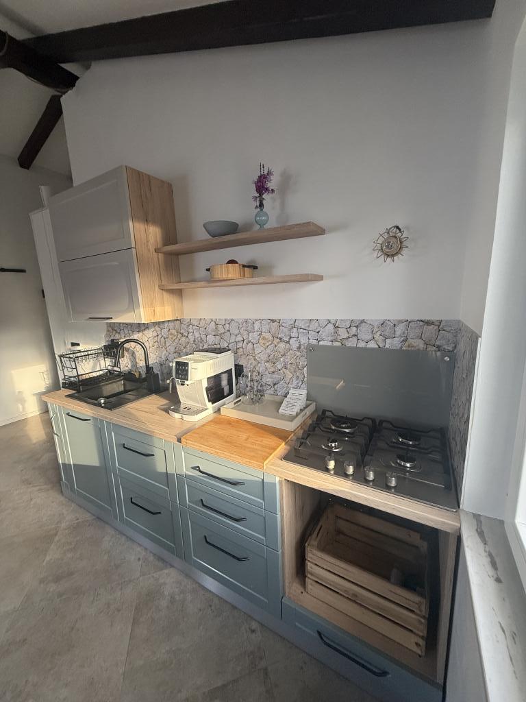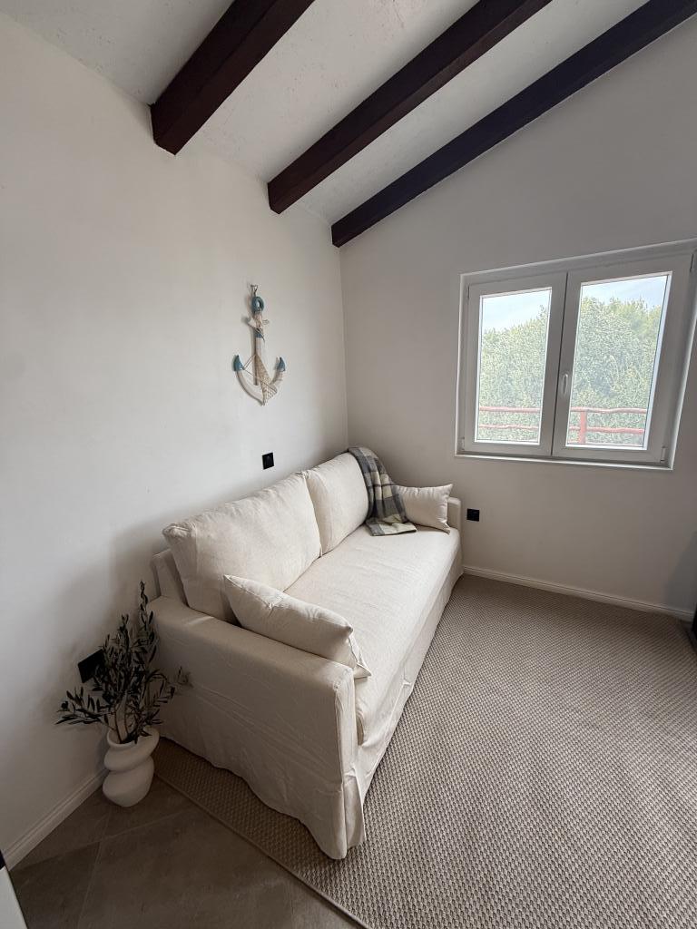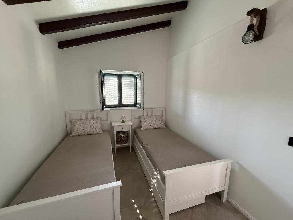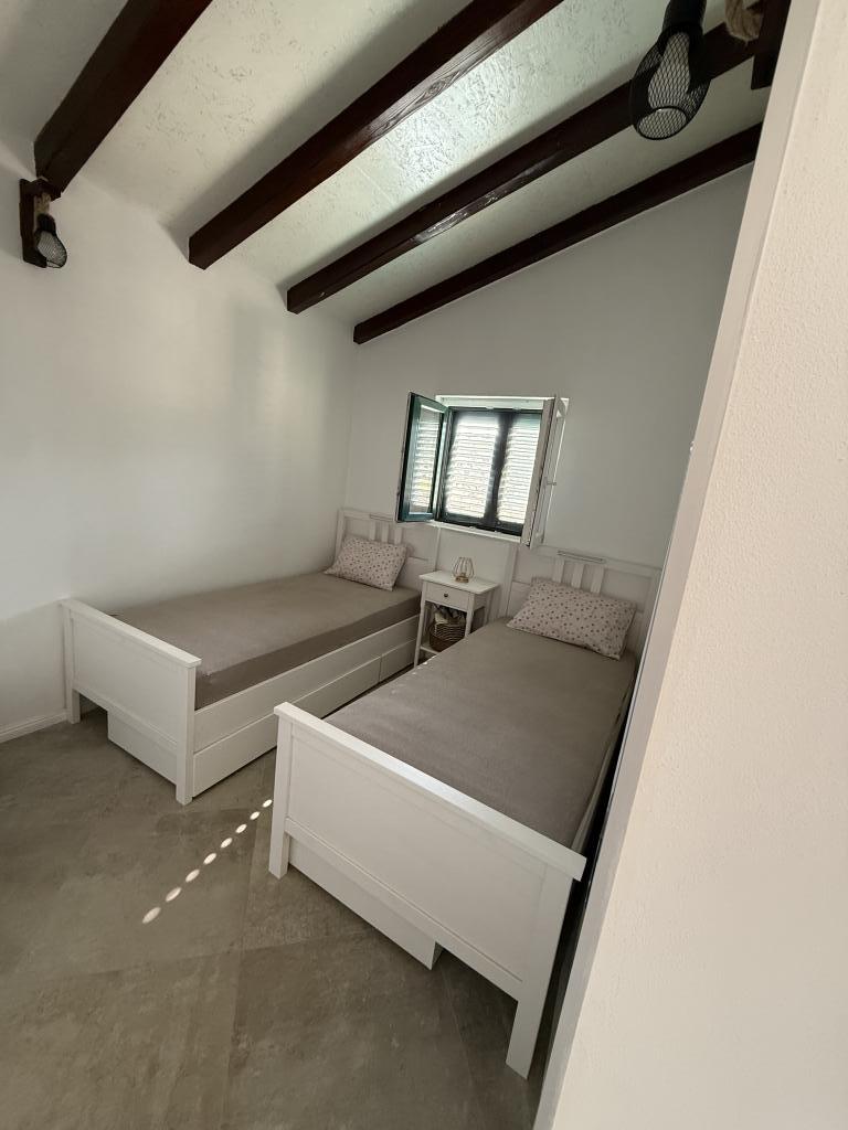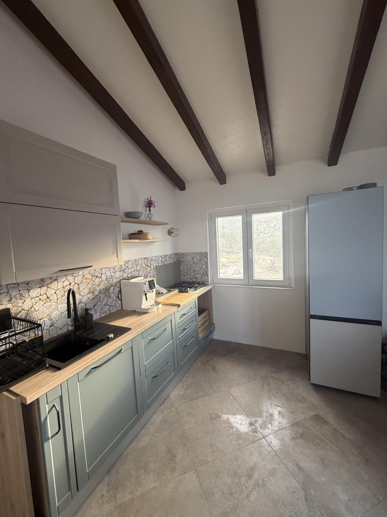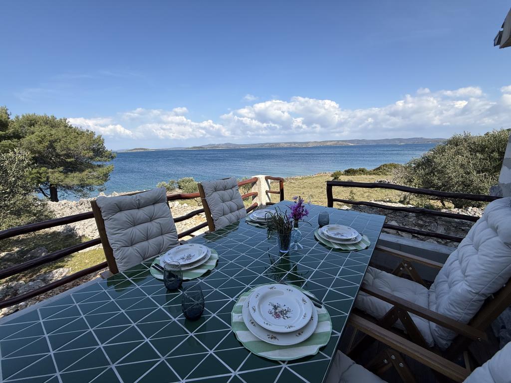 La casa de vacaciones "Kula", recientemente renovada, se encuentra en un oasis de paz en la bahía de Bizikovica, en la isla de Žut. La casa está ubicada en una zona apartada, a 20 metros del mar y del paseo marítimo. La terraza ofrece una hermosa vista al mar. Ideal para relajarse cuerpo y mente. La propiedad cuenta con dos dormitorios, un baño con ducha, una cocina equipada y una amplia terraza. Dispone de agua corriente, proveniente de la lluvia, que no es potable y se utiliza exclusivamente para ducharse y lavarse. Se recomienda un uso responsable del agua, ya que en la isla es un bien preciado. La electricidad se obtiene mediante paneles solares de 12 V. En la bahía vecina, a la que se accede por un sendero señalizado que sube una colina (a 20 minutos a pie), se encuentran restaurantes de primera categoría, el puerto deportivo ACI y un mercado. Se recomienda comprar alimentos y agua potable en el puerto de salida.