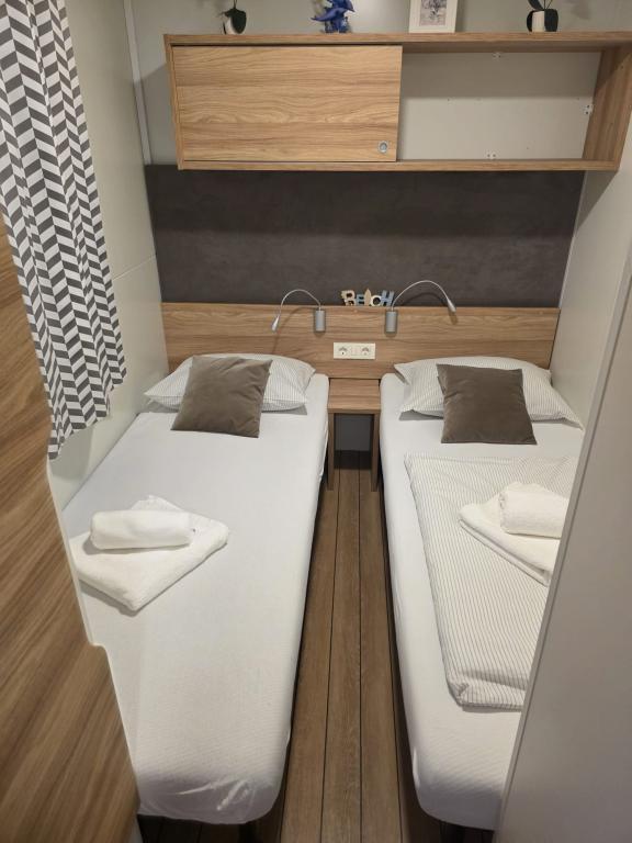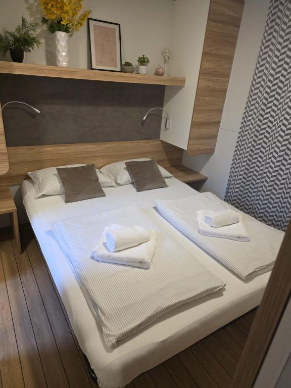 Alojamiento confortable: La casa móvil Glamour Pakoštane en Pakoštane ofrece dos dormitorios y dos baños con una amplia sala de estar. El alojamiento incluye una cocina totalmente equipada, aire acondicionado y WiFi gratuita. Instalaciones de ocio: Los huéspedes pueden disfrutar de la terraza, el bar y la piscina infantil. Las instalaciones adicionales incluyen un comedor, mobiliario exterior y aparcamiento privado gratuito. Ubicación privilegiada: El camping se encuentra a 27 km del aeropuerto de Zadar, a pocos pasos de la playa de Punta. Cerca se encuentran el puerto deportivo de Kornati y el Museo del Patrimonio de Biograd, ambos a 8 km. Los alrededores ofrecen numerosas oportunidades para practicar vela.