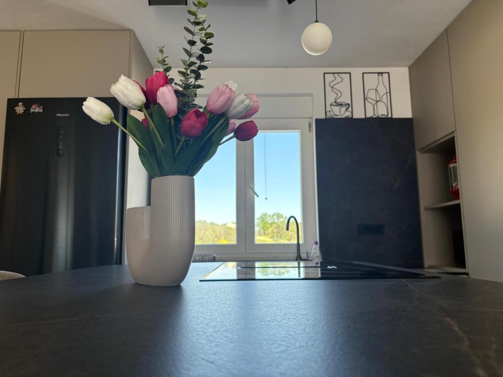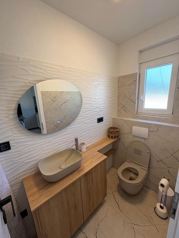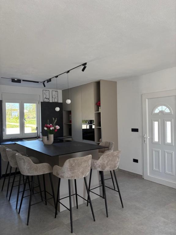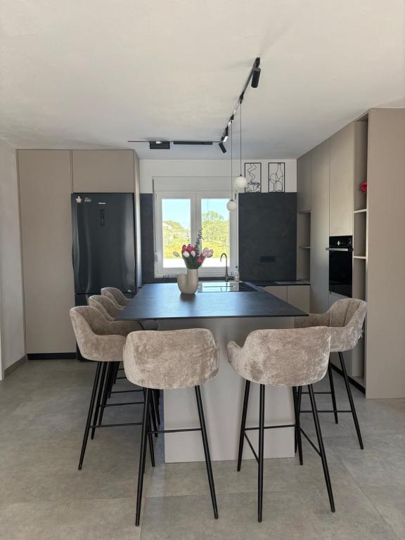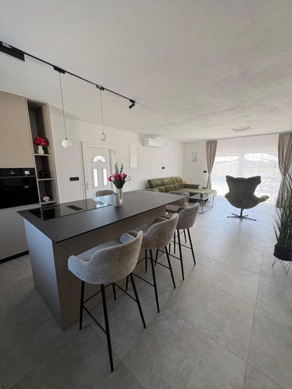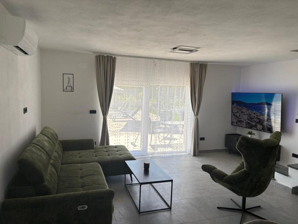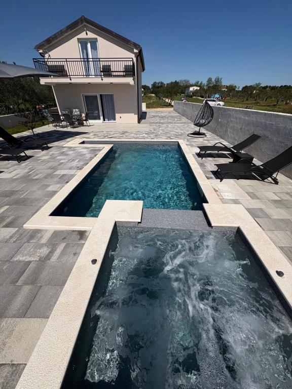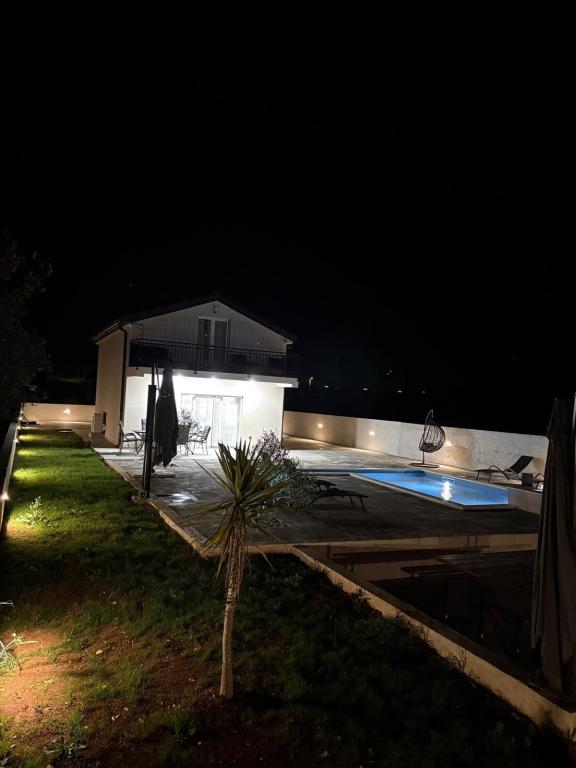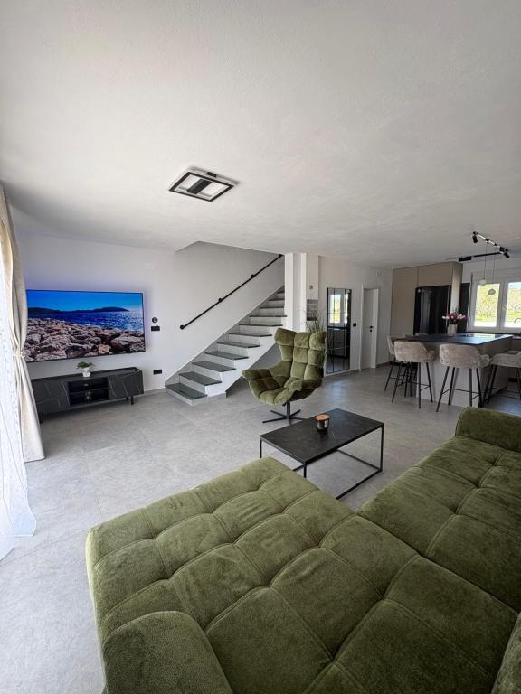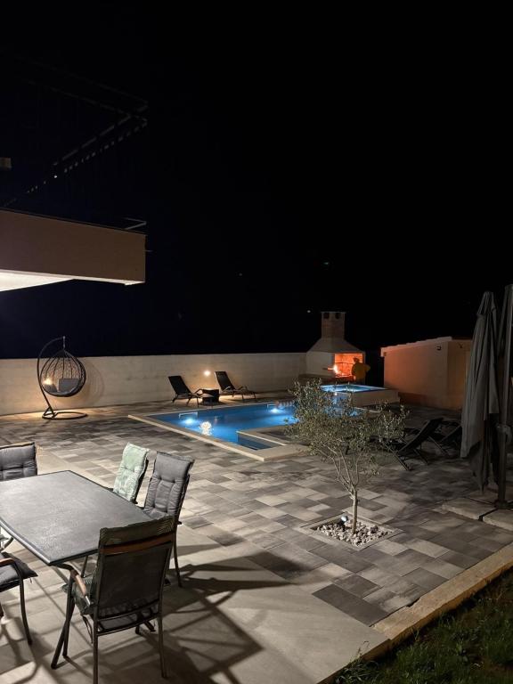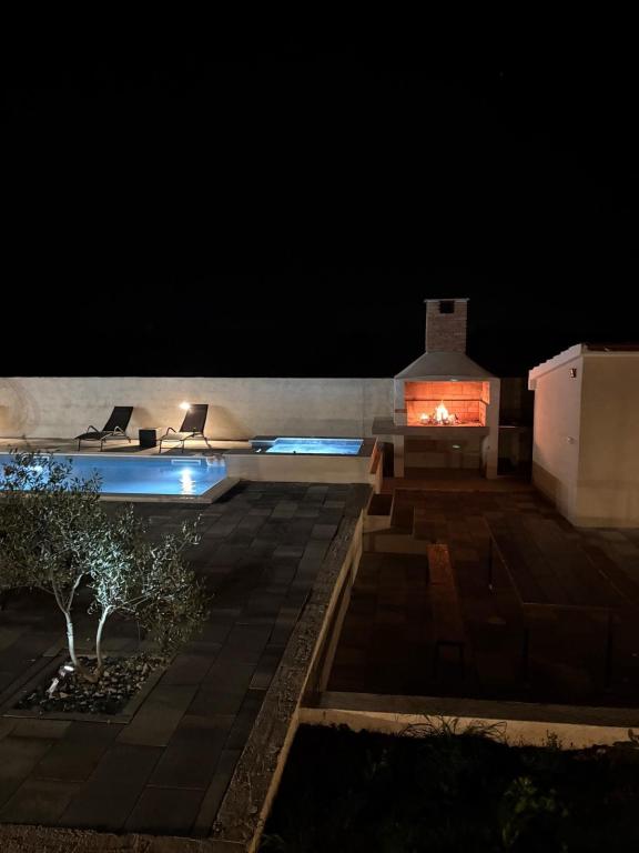 La casa de vacaciones se encuentra en pleno corazón de un olivar, a tan solo 2 km del mar, y es el lugar ideal para unas vacaciones completas en paz y tranquilidad. Rodeada de naturaleza, ofrece una sensación de privacidad lejos del bullicio de la ciudad. La piscina climatizada crea un ambiente especial, perfecto para disfrutar de los días de primavera y verano. El amplio jardín es un espacio ideal para actividades familiares. En la primera planta hay 3 dormitorios con camas dobles y un pequeño baño. El tercer dormitorio también tiene un balcón con una hermosa vista a la vegetación, y en la planta baja se encuentra una amplia cocina y sala de estar. La casa de vacaciones Frano es una opción ideal para usted, ya que combina la comodidad de la naturaleza con la cercanía al mar, ofreciéndole todo lo necesario para una estancia inolvidable. La casa está equipada con todos los electrodomésticos y una chimenea exterior.