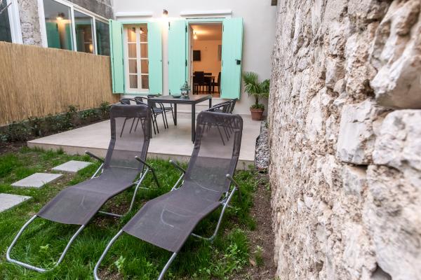 Casa de vacaciones recientemente restaurada en el centro de Biograd con un patio donde podrá relajarse y descansar mientras sale del jardín directamente a Biogradska riva con muchos bares y restaurantes, La casa tiene sala de estar en la planta baja, baño y aseo, mientras que en la planta de arriba hay dos dormitorios con camas dobles. En el ático hay 4 camas individuales. Hay numerosos bares y restaurantes, así como la hermosa Biogradska riva, justo al salir del patio. El aparcamiento está a 4 minutos a pie de la casa en el patio de la otra casa protegida. También hay una ducha al aire libre en el jardín o patio.