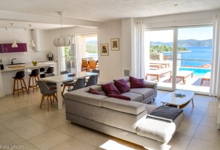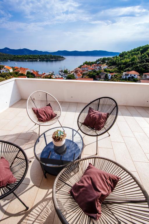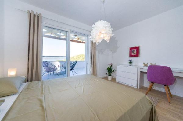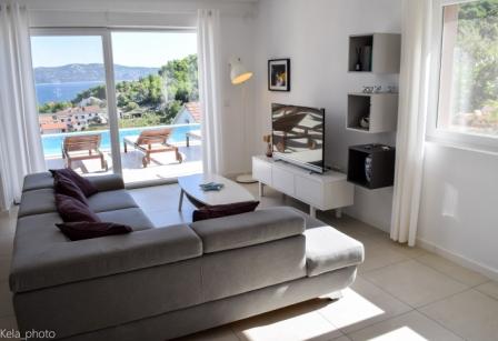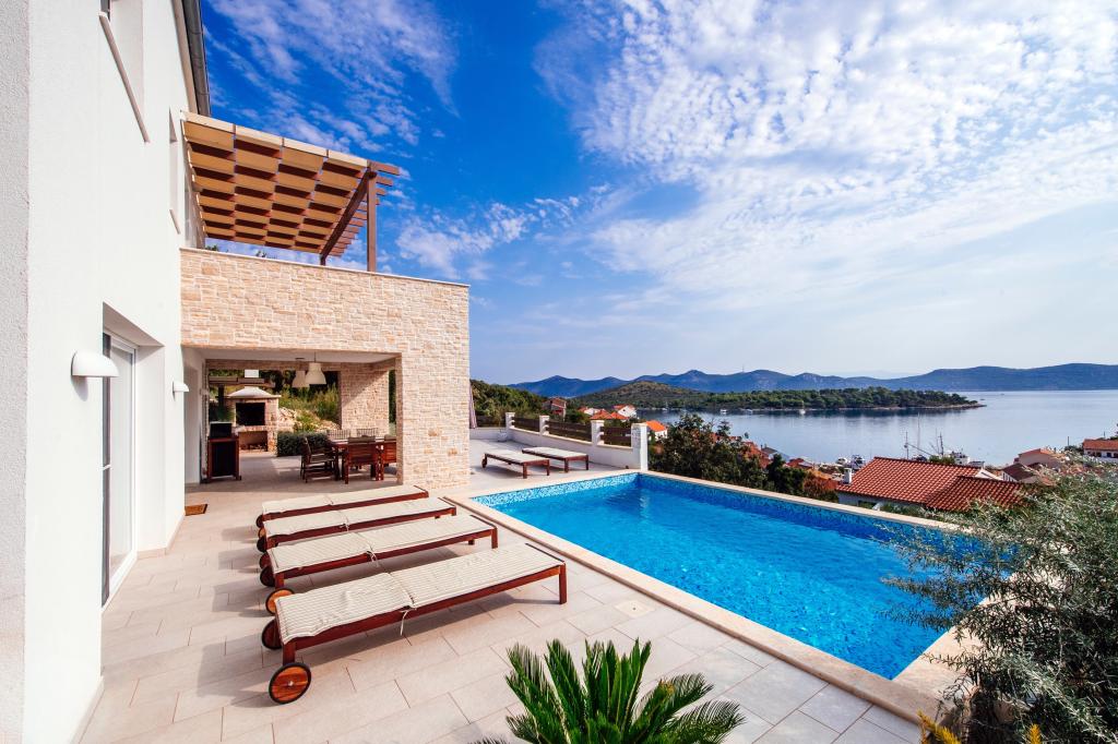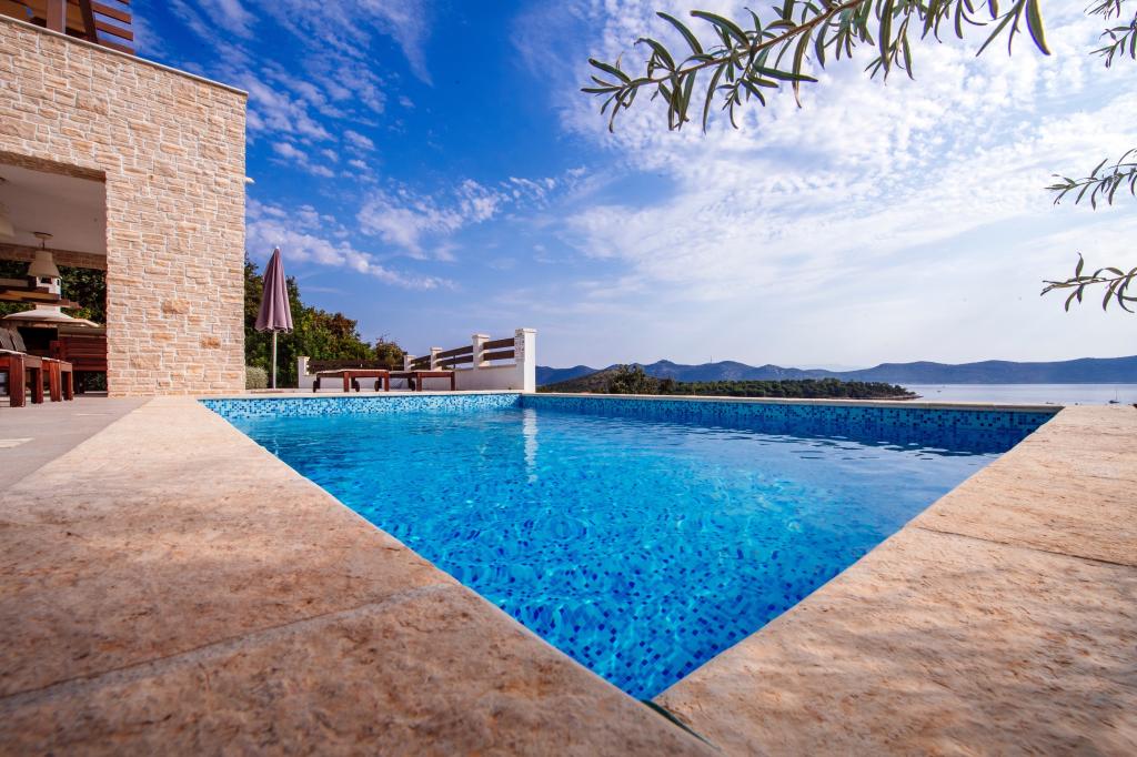 Relajarse en la tranquilidad de Villa Aya en la hermosa isla de Iz. La isla de Iz se encuentra a las puertas del Parque Nacional de Kornati. De Zadar, una ciudad con 3000 años de larga historia y está situado a una hora y media en ferry o 40 minutos en lancha rápida. Su posición y su entorno natural único es sinónimo de salvaje, sin embargo, la naturaleza ecológicamente preservada. Desde alrededor de Iz de diez islas, todos los cuales tienen un barco o alquilarlo, se puede disfrutar de un recorrido por la bahía y la playa, completo aislamiento y la intimidad. La atmósfera especial que mantiene nuestra isla lo hace ideal para vacaciones familiares y vacaciones de su alma. Nuevo y moderno, confortable Villa Aya con una piscina climatizada tiene una hermosa vista del mar y las islas vecinas. Bay Knez encuentra en la palma de la mano. . La villa tiene tres dormitorios, tres baños, sala, cocina y comedor que forman parte de la terraza al aire libre con una piscina, barbacoa. El parking está disponible en frente de la casa. Se aceptan mascotas pequeñas.