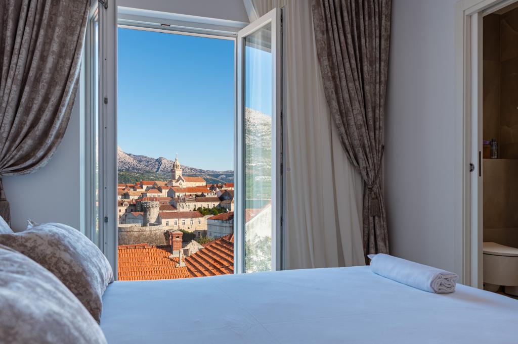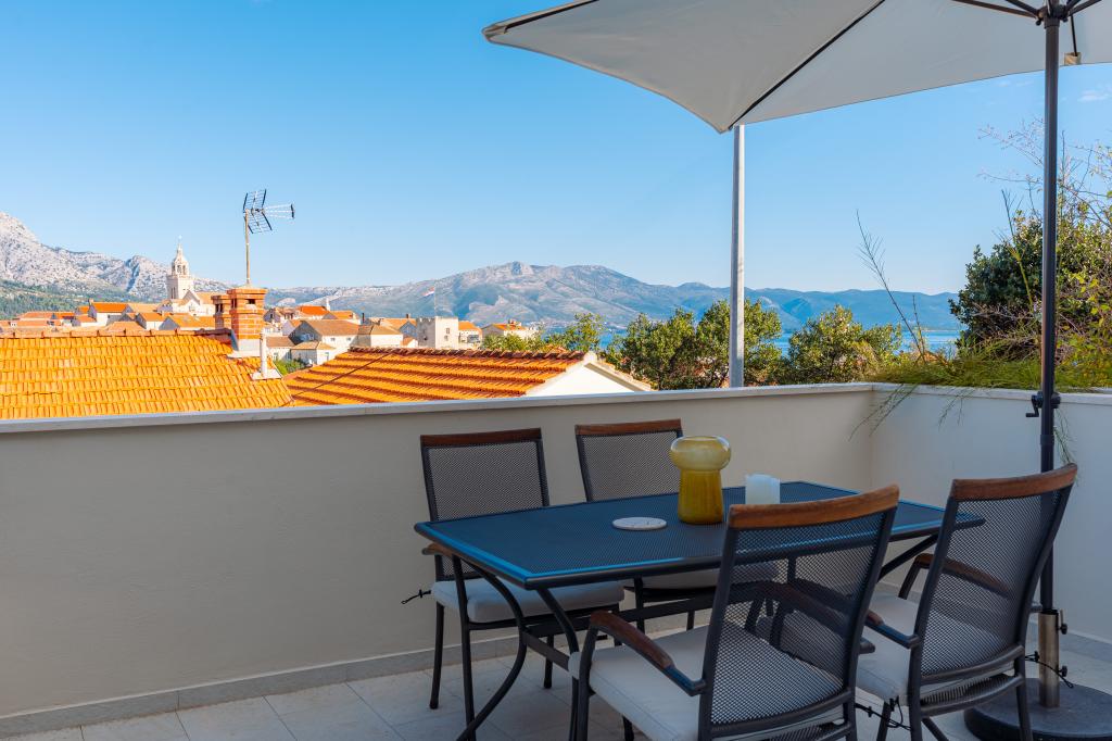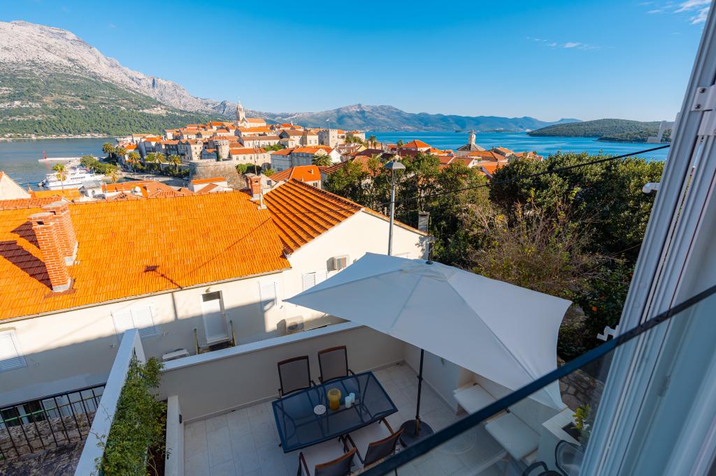 Ubicada en el corazón del casco histórico de Korčula, esta hermosa casa ofrece espectaculares vistas al mar y al casco antiguo. Sus elegantes habitaciones ofrecen comodidad y lujo. La amplia terraza es perfecta para disfrutar de las puestas de sol con una copa de vino local. La proximidad a atracciones culturales, restaurantes, la plaza principal y el mar (a 120 m a pie) permite acceder fácilmente a todos los encantos de la isla. La elección perfecta para unas vacaciones relajantes e inolvidables en una de las islas croatas más hermosas.