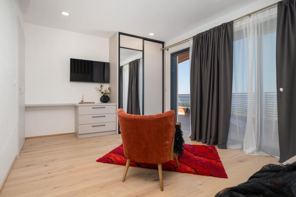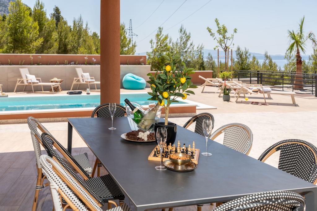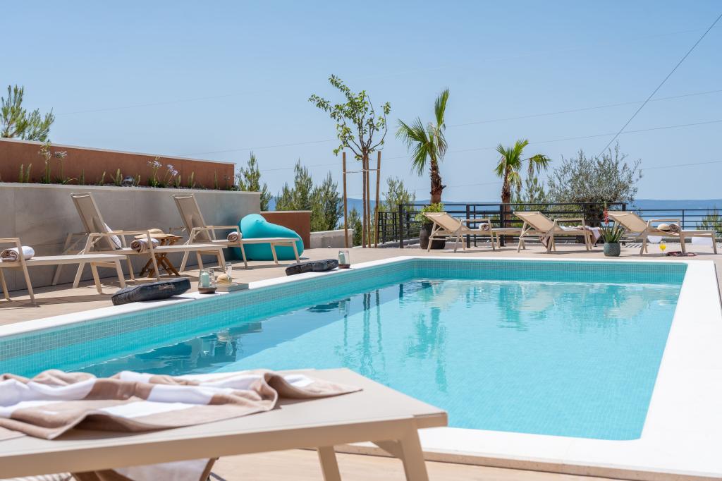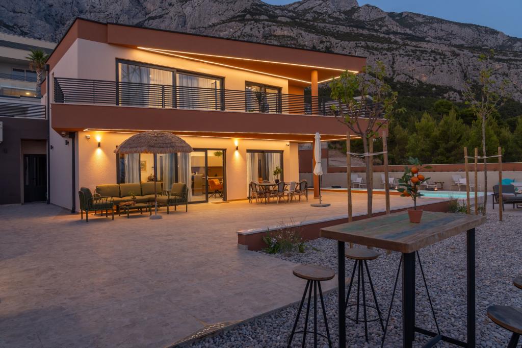 Una villa moderna con espectaculares vistas panorámicas al mar azul y al gigantesco monte Biokovo: ¡un auténtico oasis de lujo para familias o grupos de hasta 8 personas! Disfrute de una piscina privada para un refrescante baño, una barbacoa para veladas inolvidables y una amplia zona de estar al aire libre perfecta para relajarse, disfrutar de momentos románticos o disfrutar de alegres cenas familiares bajo las estrellas. ¡Su sueño en Dalmacia le espera!