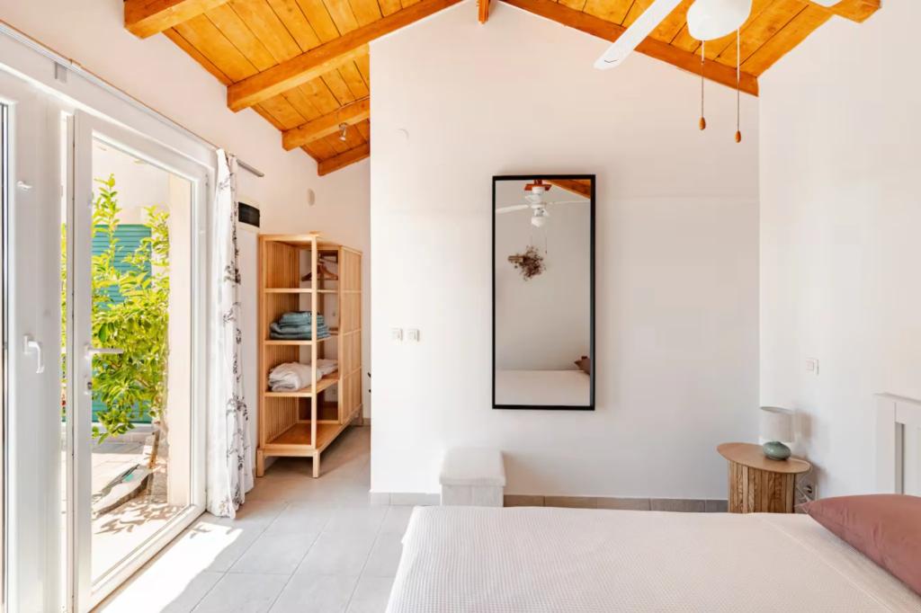 Nuestra casa de vacaciones cuenta con tres cómodos dormitorios, una cocina totalmente equipada y un interior agradable, ideal para relajarse. Dos de los dormitorios se encuentran en la planta baja, mientras que el tercero se encuentra en el ático, accesible mediante una escalera plegable. Esta habitación ofrece un espacio especial y acogedor, ideal para niños mayores o adultos. Debido a su acceso más empinado, no se recomienda para niños pequeños ni personas mayores. Un dormitorio en la planta baja tiene su propio baño y entrada independiente, lo que proporciona mayor privacidad. **Zona exterior** A su disposición tiene una piscina privada al aire libre con opción de climatización, ideal para usar desde finales de primavera hasta principios de otoño. La piscina le permitirá calentarse cómodamente durante los días más fres