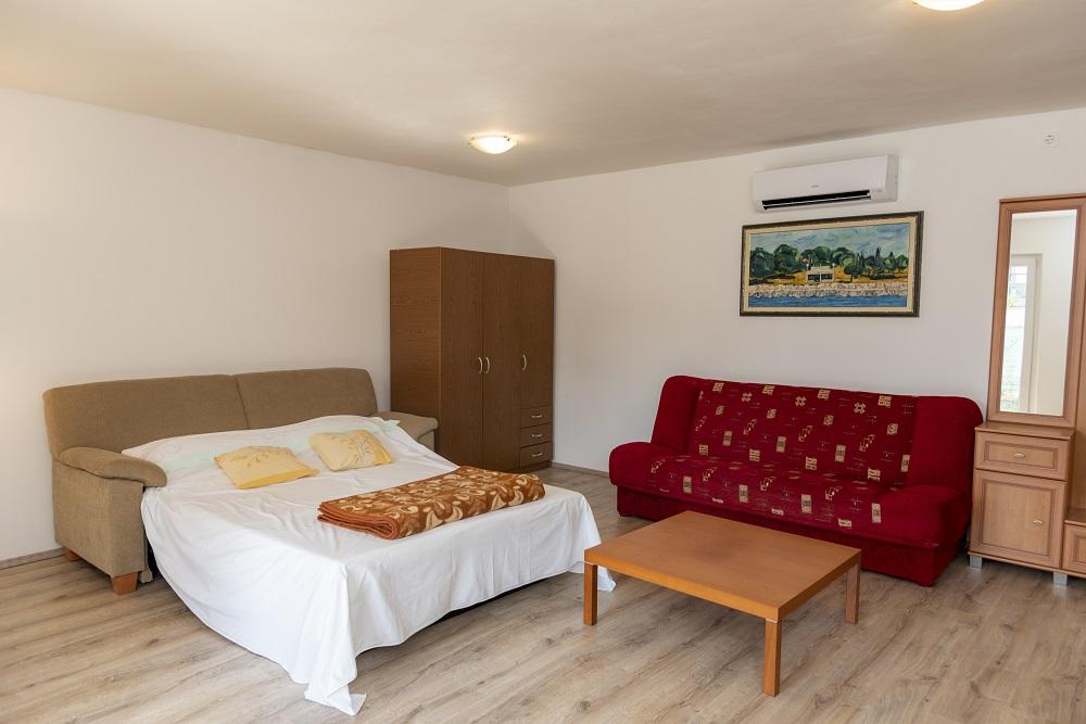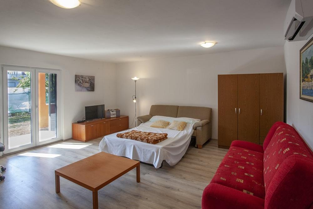 Villa Emma es una pequeña casa de vacaciones en la planta baja ubicada en una zona tranquila de Medulin. Dos habitaciones, una cocina, un baño y una gran terraza cubierta con barbacoa brindan total comodidad para tres personas. Una propiedad vallada de más de 1000 m2 ofrece privacidad, tranquilidad y estacionamiento privado. Se encuentra a 500 m del mar y a 1, 5 km del centro de Medulin, ya 600 m del banco, el supermercado o restaurante más cercano. Dispone de aire acondicionado, conexión inalámbrica a internet gratuita, TV, cocina con horno, microondas, nevera y lavavajillas, y baño con lavadora. En la nueva área aún no desarrollada de la ciudad, a poca distancia del centro y de todas las comodidades necesarias, se ahorra las multitudes y el ruido del verano. La carretera de asfalto está a solo 50 m de la entrada de la propiedad, y la ciudad de Pula y el aeropuerto están a unos diez km. La casa ha sido completamente renovada en 2018, y el terreno cerrado y la naturaleza circundante brindan paz y privacidad. Los propietarios no residen cerca de la propiedad, pero siempre están disponibles para cualquier tipo de asistencia. .