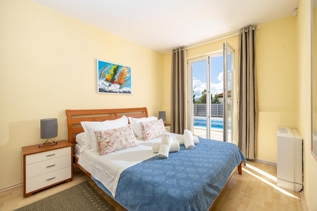 Villa muy bien equipada con piscina y jacuzzi. Una cocina bien equipada en el salón de la primera planta: dos neveras grandes, platos, vasos, vasos, batidora, batidora, rallador, realmente no faltaba de nada. Una gran terraza con vistas al mar, donde podrá sentarse cómodamente por la noche. Dos baños arriba, un baño en el primer piso y otro baño en la planta baja es una gran ventaja para una gran cantidad de vacacionistas. Hermosas playas climáticas bastante cercanas. A las tiendas alrededor de 1 km, a los restaurantes alrededor de 1 km o 2 km. A Omiś caminar en un hermoso entorno de unos 4 km. Una habitación sin ventana, de la que no sabíamos muy bien, tenemos una cama mala, pero creo que el propietario pensará en reemplazarla. En general, todo el grupo estuvo muy contento con la estadía y recomendamos encarecidamente este asiento.