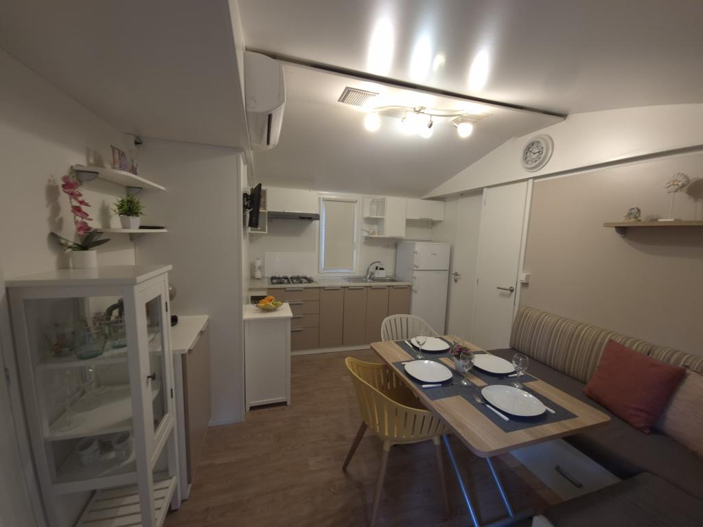 Alojamiento confortable: La casa móvil Glamour Pakoštane en Pakoštane ofrece dos dormitorios y dos baños con una amplia sala de estar. El alojamiento incluye una cocina totalmente equipada, aire acondicionado y WiFi gratuita. Instalaciones de ocio: Los huéspedes pueden disfrutar de la terraza, el bar y la piscina infantil. Las instalaciones adicionales incluyen un comedor, mobiliario exterior y aparcamiento privado gratuito. Ubicación privilegiada: El camping se encuentra a 27 km del aeropuerto de Zadar, a pocos pasos de la playa de Punta. Cerca se encuentran el puerto deportivo de Kornati y el Museo del Patrimonio de Biograd, ambos a 8 km. Los alrededores ofrecen numerosas oportunidades para practicar vela.