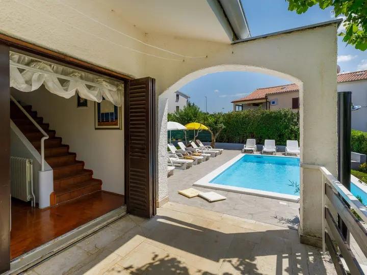 Chalet con piscina, dos plantas, superficie interior 200 m2, tres terrazas y jardín con césped de 500 m2. La piscina tiene 24 m2, 7 m de largo y 3,5 m de ancho con barbacoa. La villa está situada en la tranquila ciudad de Špadići, a 2 km del centro de Poreč, a 1 km del mar y de la playa. La casa tiene su propio estacionamiento. El interior de la villa consta de: salón-comedor 50 m2 con TV satélite. Receptor y DVD y aire acondicionado. Salida a la terraza. Terraza 30 m2. Habitación doble con acceso a la piscina y zona para tomar el sol. Cocina abierta (horno, lavavajillas, vitrocerámica, congelador). Planta superior: galería. 1 habitación a 1 franco. con cama (160 cm, 200 cm de longitud). Salida a la terraza, 8 m2, muebles para sentarse, 1 habitación con cama doble (2 x 90 cm, 200 cm de longitud). con vista al área verde, solarium y piscina, 1 habitación con vista a la piscina con 2 camas (90 cm, 200 cm de largo). Bañera/inodoro. Disponible: cuna (cargo extra). Wi-Fi encendido.