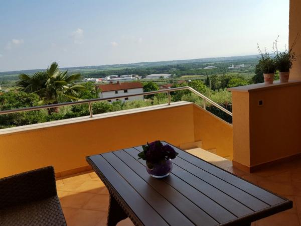Recientemente decorado Villa Adriatic está situado en la pintoresca localidad de Kaštelir, a 10 kilómetros de distancia del centro de la ciudad, le ofrece las condiciones ideales para unas vacaciones con su familia y amigos. Villa consta de 2 dormitorios, 2 baños, comedor, cocina, sala de estar, amplia terraza cubierta con impresionantes vistas de la costa del Adriático y tabernas decoradas con los típicos de Istria. También hay una gran piscina con terraza. Para aquellos que buscan unas vacaciones activas en la distancia 5 kilometros es uno de los más grandes en Europa parque acuático, parque acuático Istralandia; 4 kilometros de distancia de aparcamiento adrenalina y Motodrom Tar, montar a caballo y muchas otras actividades con las que nos encontraremos con mucho gusto.