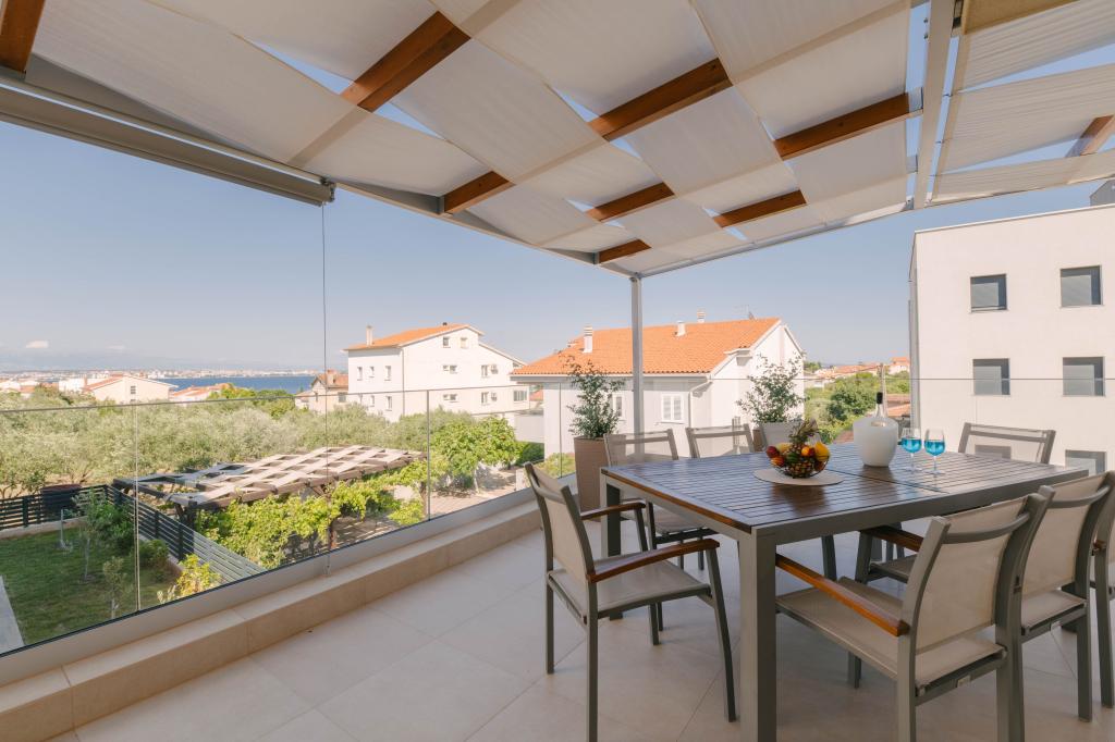 Bienvenido a una casa de vacaciones de nueva construcción con piscina privada climatizada, ubicada en Preko, en la hermosa isla de Ugljan. Esta moderna casa cuenta con 4 elegantes dormitorios, 3 baños y está rodeada de un amplio jardín completamente vallado con exuberante vegetación. La propiedad incluye aparcamiento privado para hasta 4 coches, una terraza con zona de barbacoa, una azotea con una hermosa vista de 360° y un pequeño jardín paisajístico. Disfrute de hermosas vistas al mar desde todas las plantas y llegue a la famosa playa de Jaz en solo 3 minutos a pie. La playa de Jaz es la playa de arena más grande de Preko y cuenta con la certificación ecológica de Bandera Azul para un baño limpio y seguro. Al otro lado de la calle se encuentra el supermercado más grande de la isla, que incluye una cafetería, una carnicería y una panadería.