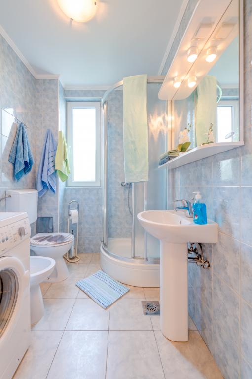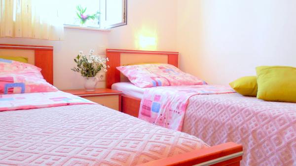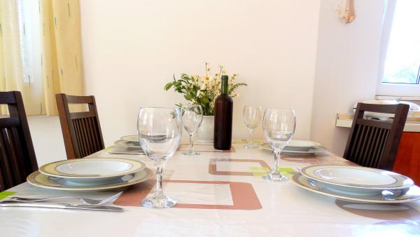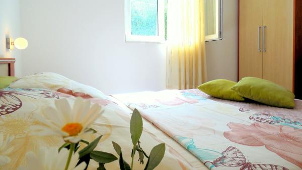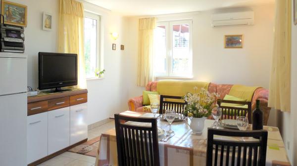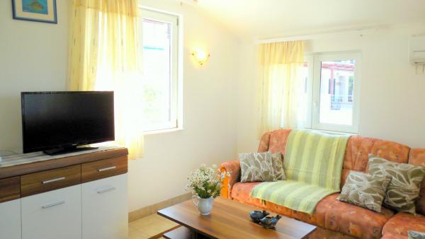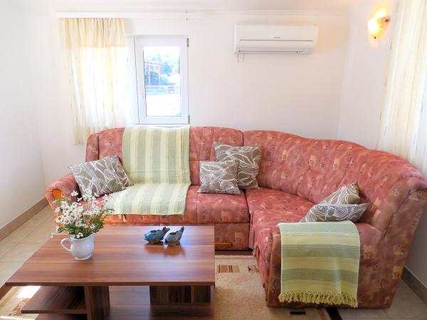 Esta hermosa villa de rayos de sol con dos apartamentos le invita a disfrutar de sus vacaciones. Ambos apartamentos se extienden sobre 57 m² de magníficas villas blancas junto al mar. En la casa de vacaciones, decorada con colores brillantes, encontrará dos habitaciones con cama doble y dos habitaciones con dos camas separadas. La sala de estar es de planta abierta, con área de comedor, sofá cama grande para uno más, TV satelital y equipo de música y conduce directamente a la terraza amueblada: un lugar agradable y tranquilo a la sombra en los días calurosos de verano. La cocina totalmente equipada tiene todo listo para darle a usted y a su familia la alegría de cocinar. El baño tiene una ducha, inodoro y bidet, y una lavadora. Vila Sunray se alquila solo en su totalidad. Estos precios son para toda la casa, es decir, A1 y A2 juntos.
