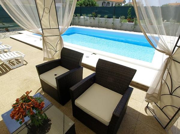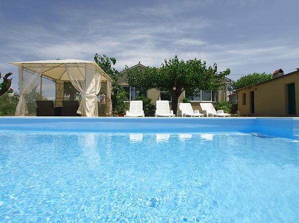 La familia de la casa 3 piezas 100 m2 con barbacoa casa, amplio jardín con césped y árboles de 1.600 m2 y una piscina climatizada que mide 7 x 4 x 1,5 m. Aparcamiento junto a la casa. La proximidad de las tiendas y restaurantes a 300 m, y la playa de arena y de gravilla 800 m.