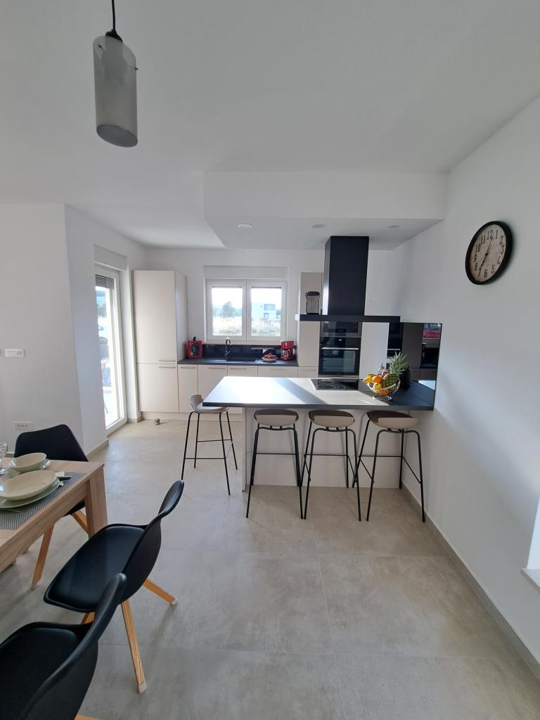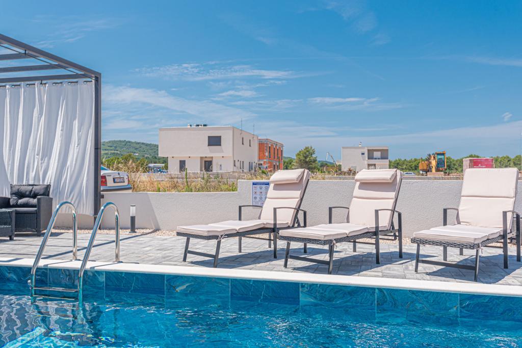 Una villa nueva, completamente amueblada y con piscina en un rincón tranquilo de la ciudad de Vodice, aproximadamente a 1 km o 15 minutos a pie del centro, la playa y otras instalaciones. La villa dispone de una piscina climatizada de 7x3 m y 1,5 m de profundidad, junto a la piscina hay tumbonas, un columpio de jardín y muebles para descansar en el cenador. El patio trasero tiene una parrilla al aire libre y una mesa de comedor. La casa tiene tres habitaciones en el primer piso, una habitación principal con baño y dos habitaciones con baño en el pasillo común. Las camas de dos habitaciones tienen unas dimensiones de 180x200 cm y la tercera habitación tiene camas separadas de 90x200 y 120x200. Todas las habitaciones están equipadas con TV y aire acondicionado. Ropa de cama y toallas están a disposición de los huéspedes. En la planta baja, la cocina está totalmente equipada con vajilla, tostadora, batidora y exprimidor eléctrico de cítricos, además de cafetera de filtro. La cocina dispone de lavavajillas, nevera y congelador, horno y microondas. El salón tiene un sofá rinconero y un televisor con Internet y canales vía satélite.