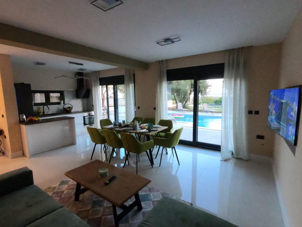 Casa completamente nueva con piscina en el pueblo de Vrana, a 15 minutos en coche de Biograd na Moru. La propiedad tiene una piscina de 10x4 m, tres dormitorios, tres baños, un gran salón, cocina, terraza y una gran zona. Junto a la piscina. Tiene aparcamiento propio, barbacoa. En una zona tranquila de la ciudad con vistas al lago Vrana. Cerca hay lugares de interés histórico (el Han turco renovado).