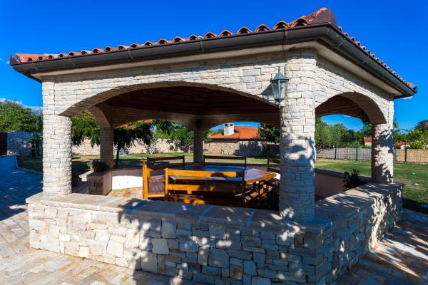 En el pequeño pueblo de Gorica cerca de Zadar está situado en una villa de lujo para 8 personas. La planta baja tiene una sala de estar, comedor y cocina y un dormitorio con un baño separado. al final del pasillo se encuentra lavadero que tiene un balcón. Primera planta hay tres dormitorios con balcones. Todas tienen aire acondicionado y baño privado. La sala de estar es una terraza cubierta que conduce a la piscina al aire libre. Al lado de la piscina hay tumbonas. El gran jardín es perfecto para que los niños jueguen, y la villa es una gran glorieta.