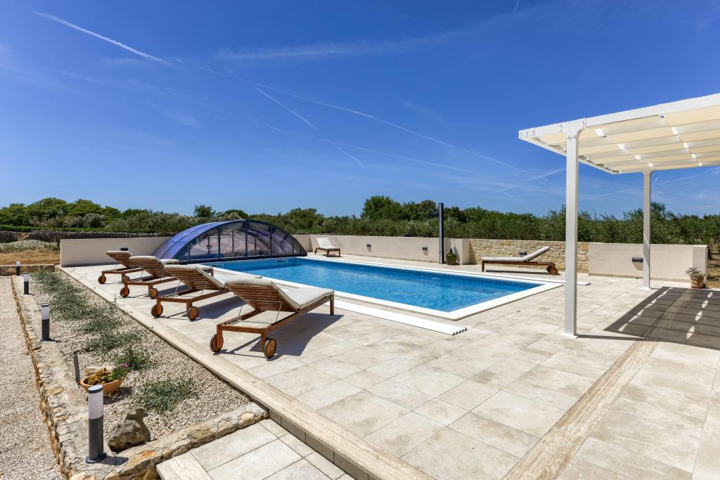 Villa Perosa es una casa de vacaciones construida en estilo rústico en 2022, con piscina cubierta y climatizada, ubicada en la localidad turística de Zaton, Nin, en una parcela vallada de 9000 m2, rodeada de 150 olivos y naturaleza. Nuestra casa de vacaciones está diseñada para constar de dos apartamentos, el apartamento principal consta de vestíbulo, baño, sala de estar y comedor con cocina. Las escaleras interiores conducen al primer piso donde se encuentran: un dormitorio principal con baño y acceso a la terraza, dos dormitorios y un baño. El segundo apartamento más pequeño, al que se accede por unas escaleras exteriores y un porche, consta de salón, cocina, pasillo que conduce al dormitorio y baño. Todos los espacios cuentan con calefacción y aire acondicionado. Los salones y dormitorios disponen de televisores con programas vía satélite e Internet. Toda la casa de vacaciones está cubierta por Internet inalámbrico 5G. La casa se alquila como una sola unidad. Nuestra piscina con calefacción y cubierta móvil permite su uso durante todo el año además de seguridad para los niños. Villa Perosa es un oasis que puede servir como base para visitar las playas de arena de Zaton y Nin, así como para explorar lugares históricos y atracciones modernas, el "Órgano